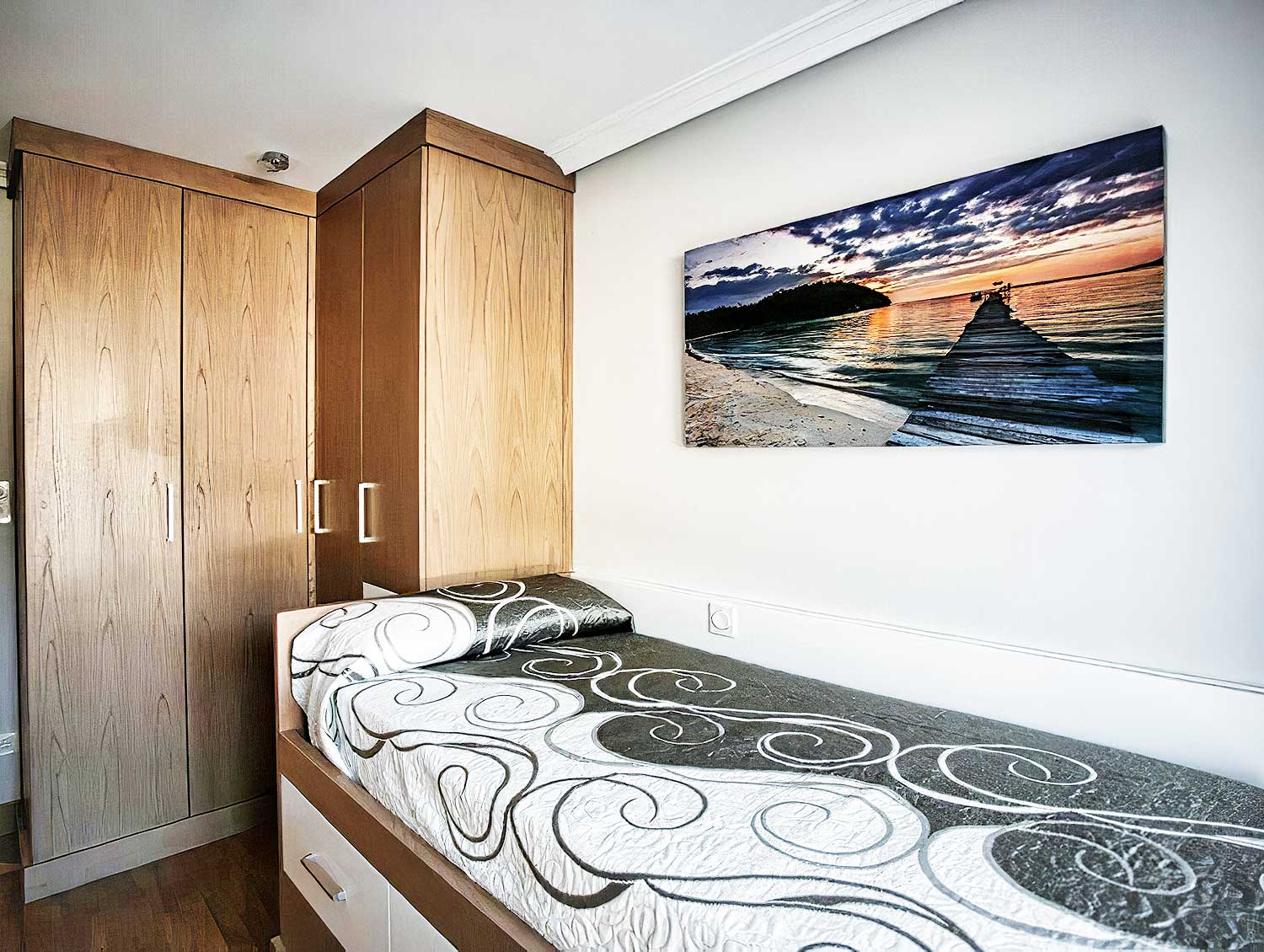 Dormitorio con armario en escuadra.
